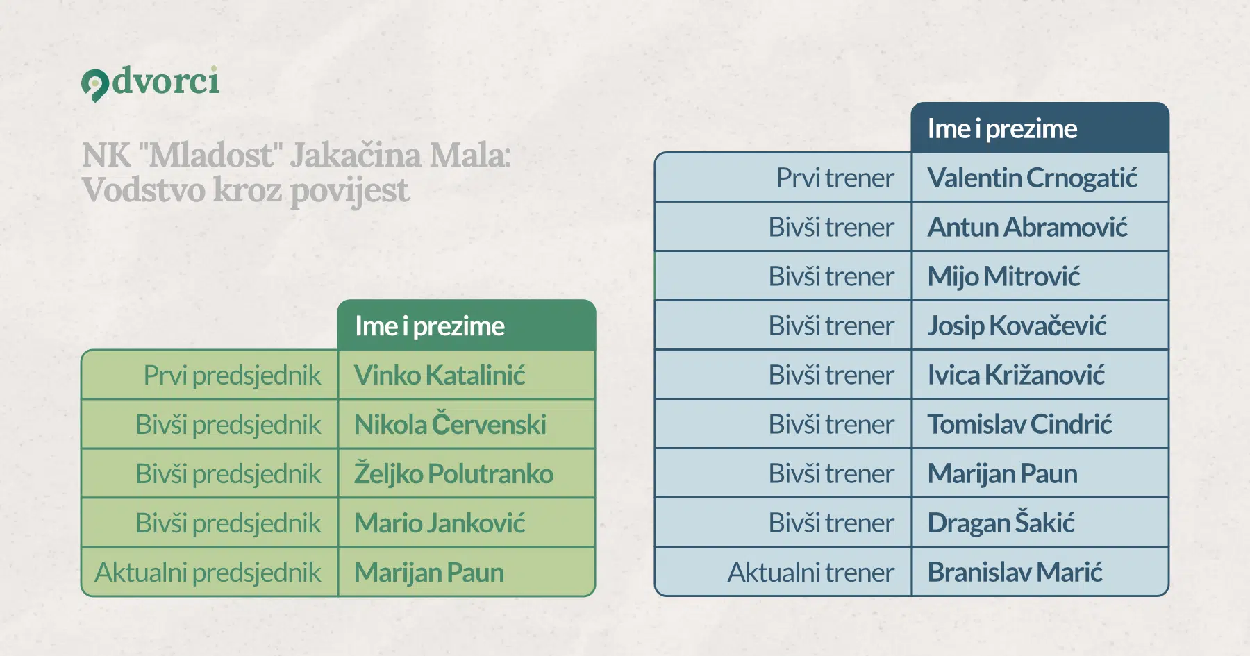 – “Mladost” iz Jakačine Male možda je jedini klub koji nema svoj stadion, a osvojio je ligu – ponosno je istaknuo predsjednik Paun. Dodaje da je misija kluba za iduću sezonu ostati natjecati se u 2. ŽNL, za što su se ove godine izborili.