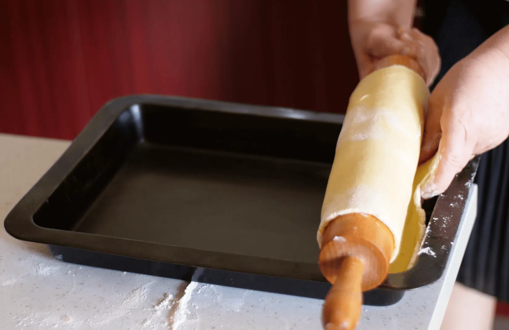 5. Podijelite i razvaljajte tijesto na dva jednaka dijela.